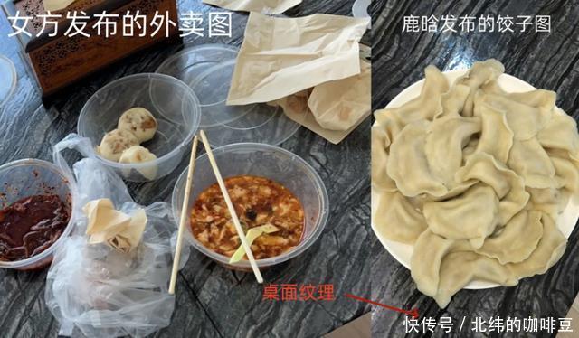 还有她在男生家吃外卖的图,餐桌和地板的纹理和鹿晗此前分享的也很相似。