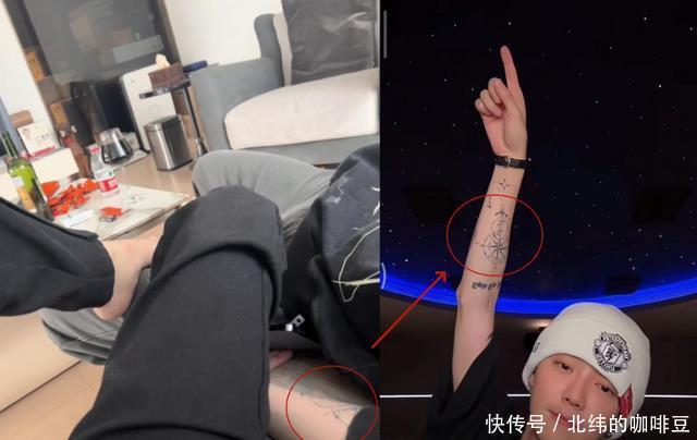 司晓迪发图,把自己的脚放在一个男生腿上,两人姿势很暧昧,男生胳膊上的纹身和鹿晗的十分相似。