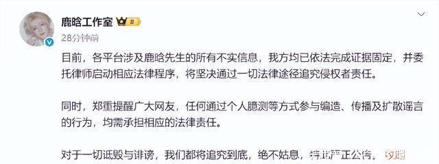 看到这些不清不楚的画面,鹿晗工作室当即出来辟谣,否认所有事情,还声称已经报警。